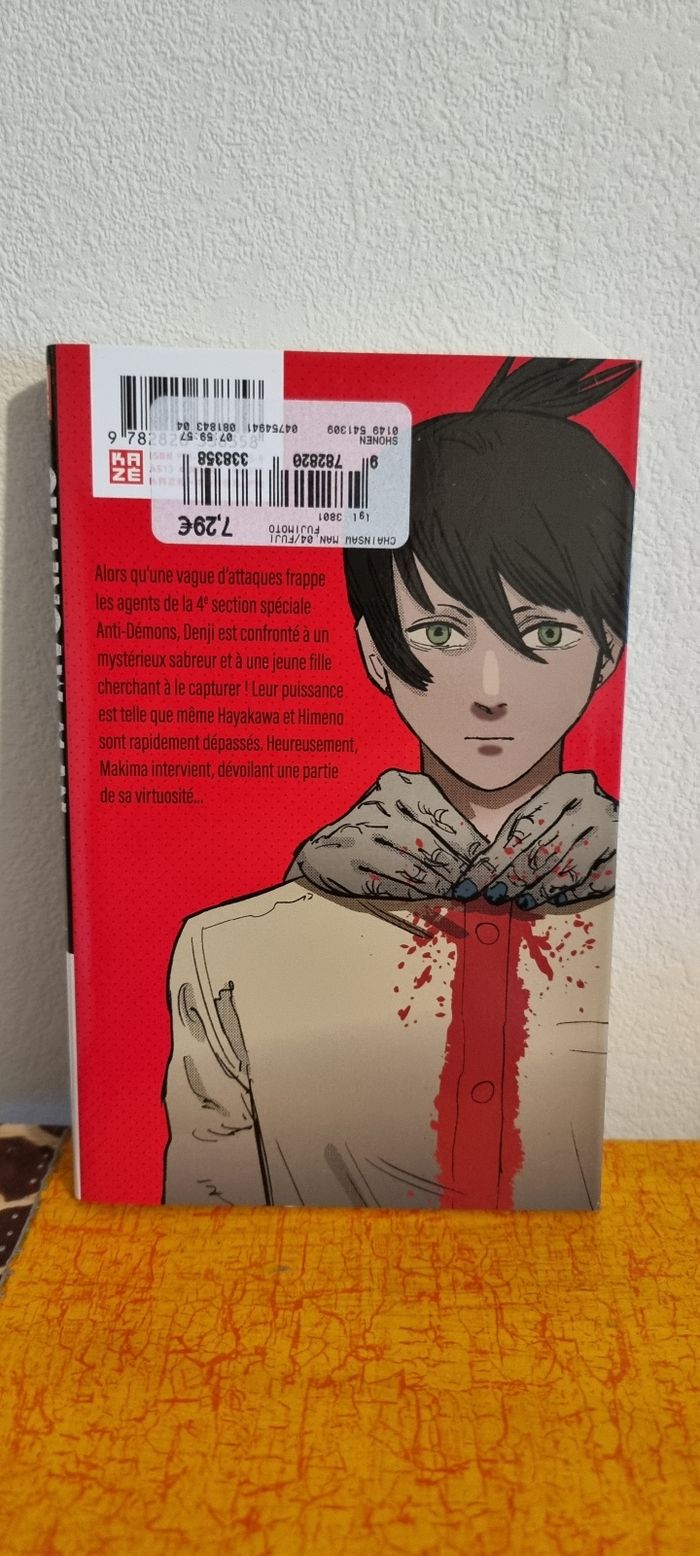 Je vends ce manga Chainsaw Man, édition en français. - Titre : Chainsaw Man - Auteur : Tatsuki Fujimoto - Genre : seinen - Langue : Français - Édition : Kazé - Numéro de tome : 4 Très bon état N'hésitez pas à me contacter pour plus d'informations !