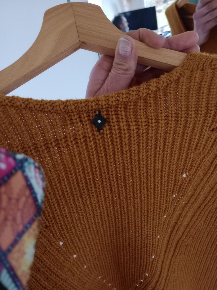 Gilet  femme s moutarde mailles côtelées c77 - photo numéro 9