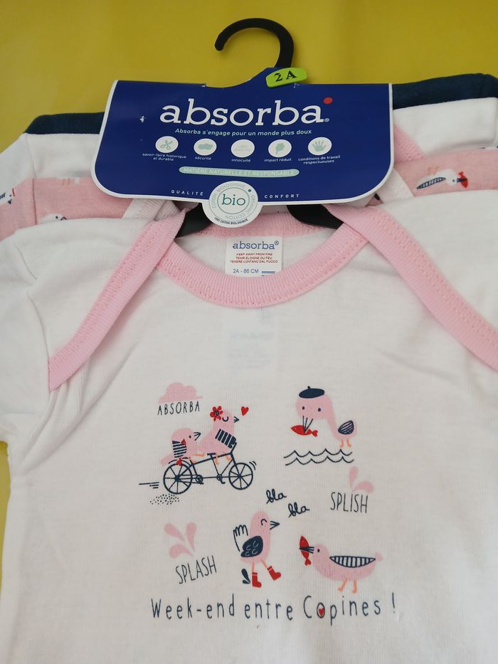 lot de 4 bodies fille manches courtes absorba 24 mois  - photo numéro 3