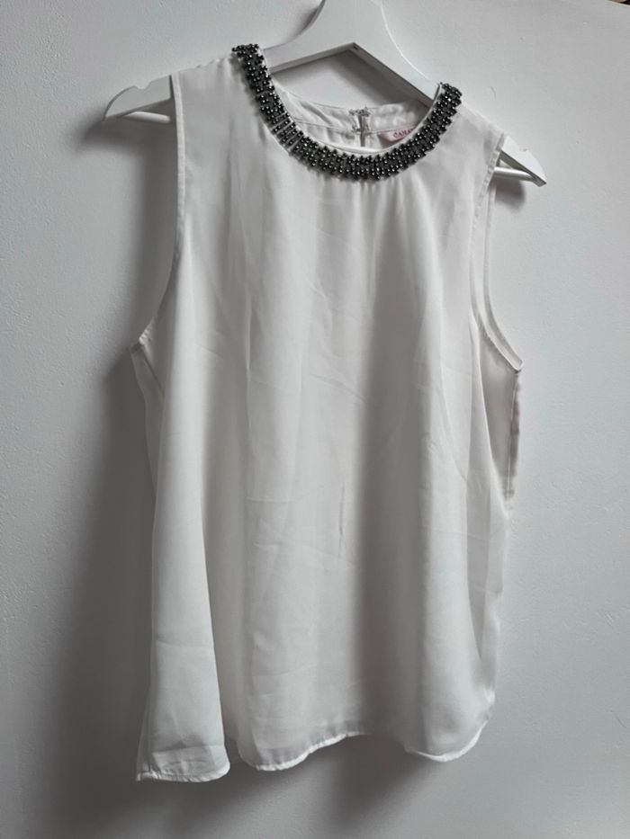 Bonjour, vends haut sans manches. Blanc Avec doublure Camaïeu 36/38