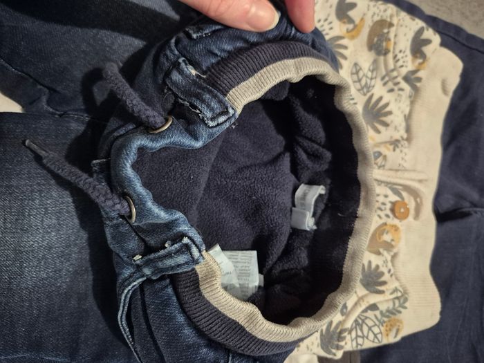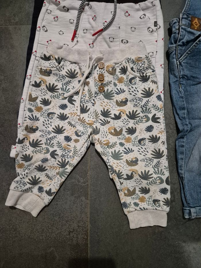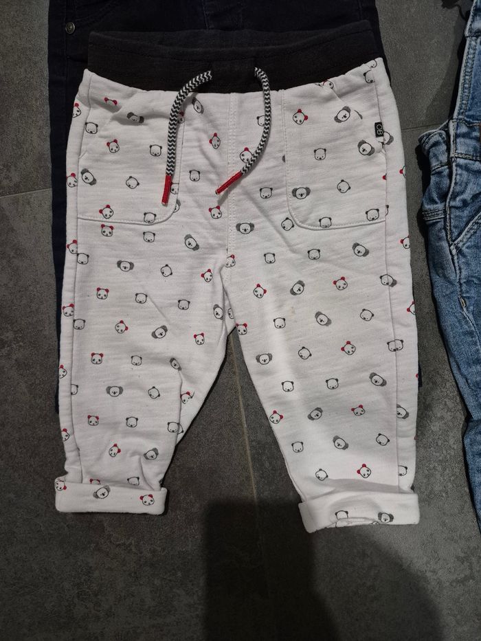 Lot de 4 pantalons et 1 salopette Peuvent être portés comme du 12 mois (taillent petit je trouve) La salopette est en jean et s'ouvre à l'entrejambe Le pantalon blanc koala a quelques taches voir photos Un des pantalons style "jean" est doublé par devant la fourrure Portés plusieurs fois