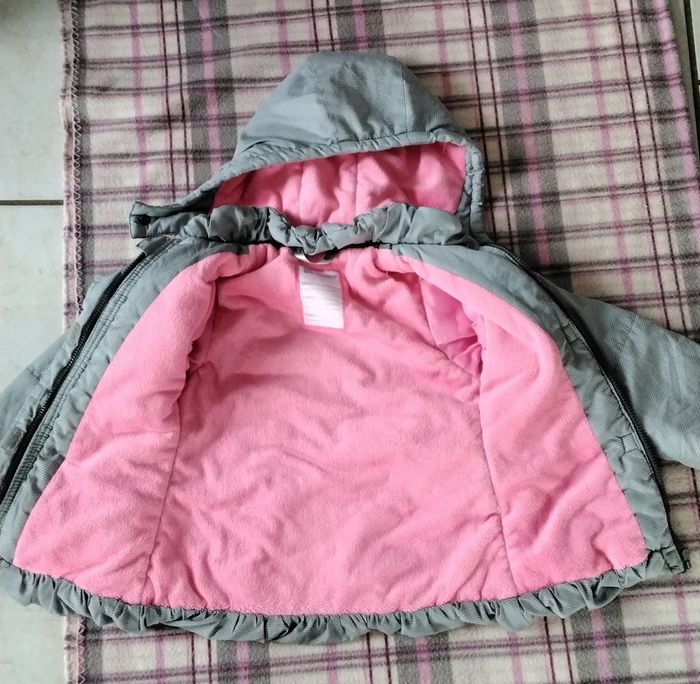 Blouson à capuche amovible De couleur gris à rayures Ce ferme avec une fermeture et des scratch 2 poches De marque Orchestra Taille 6 ans, 116 cm #moreau36_fille_6_ans