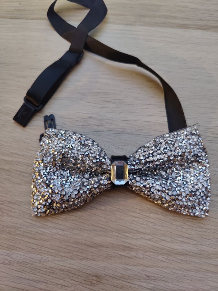 Nœud papillon gris argenté paillettes  - photo numéro 1