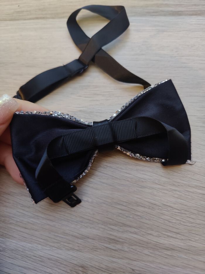 Nœud papillon gris argenté paillettes  - photo numéro 2