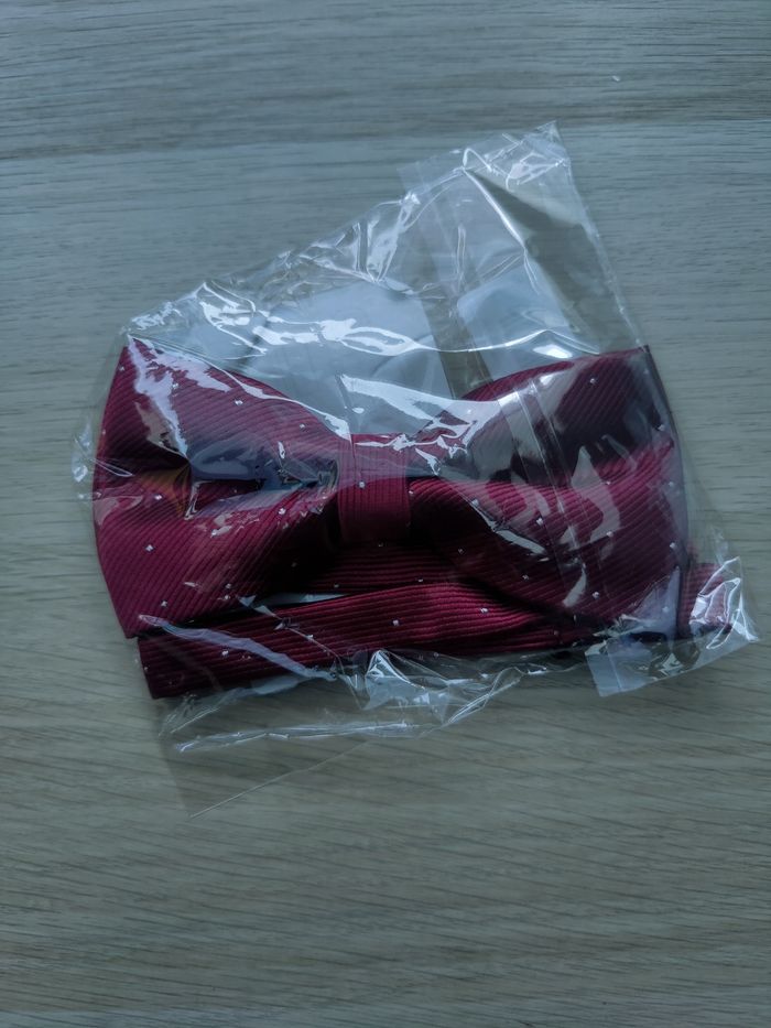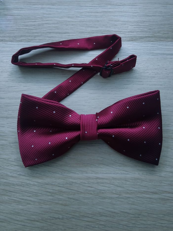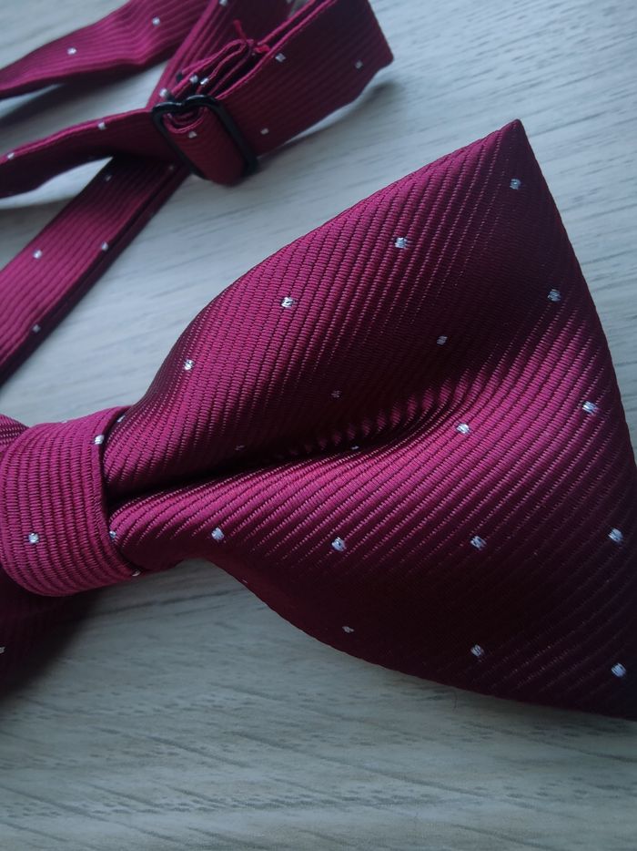 Nœud papillon bordeaux pois argentés  - photo numéro 1