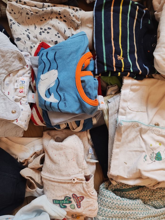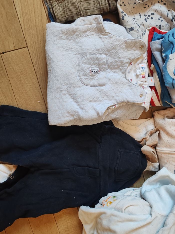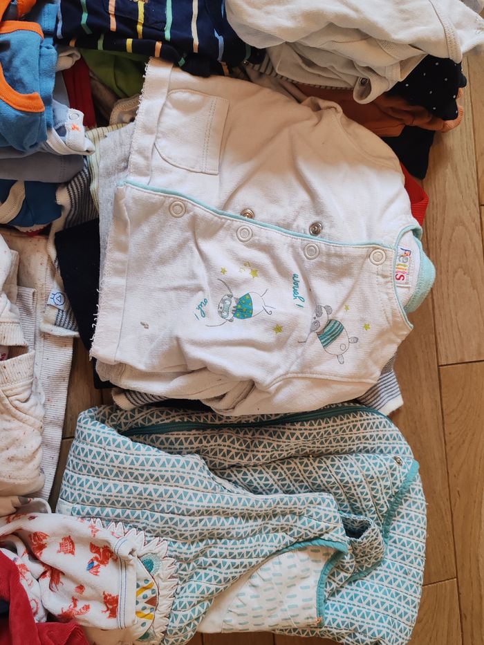70 articles au total, du pyjama au body en passant par pantalon, salopette, t shirt manche longue, gilet, chemise et pull. Du petit bateau, la compagnie des petits, obaibi, sergent major, ... Certaines pièces avec quelques tâches mais aucun défaut. Environ 7kg