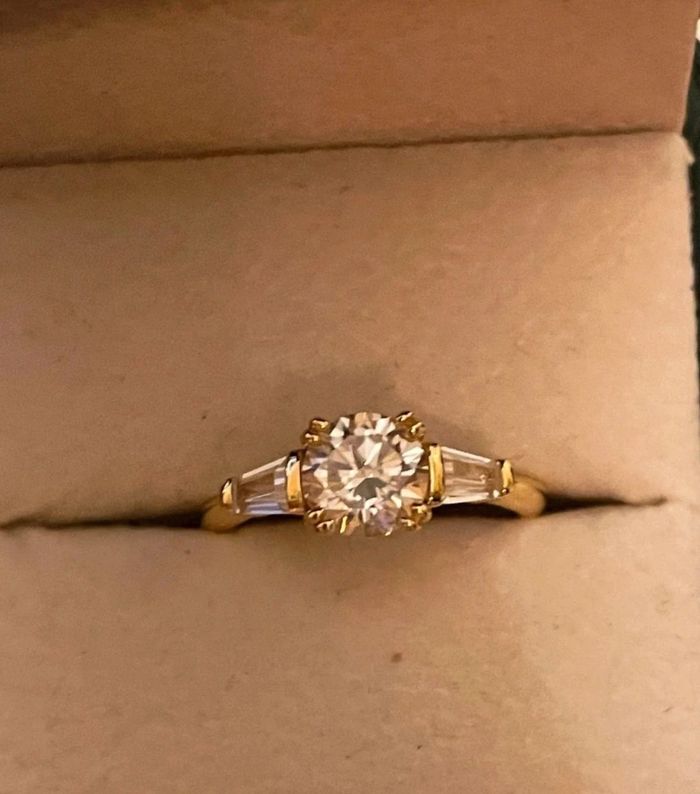 Bague argent plaqué or jaune diamant moissanite 1ct  - photo numéro 1