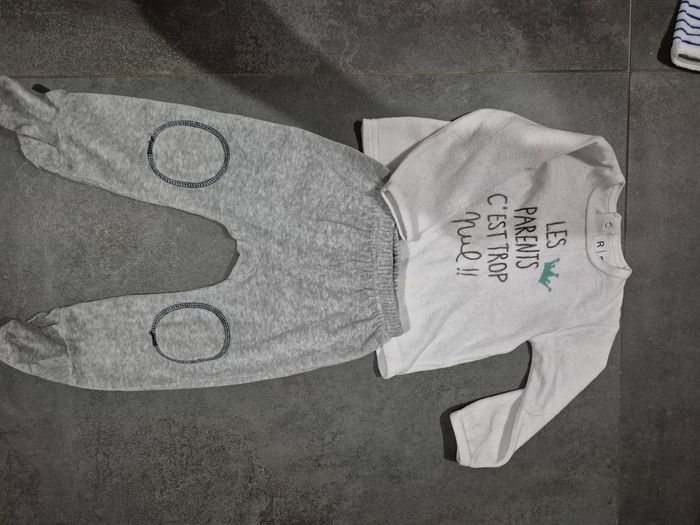 Lot de 2 pyjamas La Redoute Taille 18 mois Un pyjama type "grenouillère" et un 2 pièces qui s'attache avec des pressions. Le 2 pièces montre quelques traces d'usure - voir photos Portés plusieurs fois N'hésitez pas à faire des lots