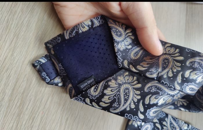 Cravate noire paisley argenté doré + mouchoir + fleur  - photo numéro 2