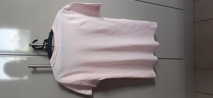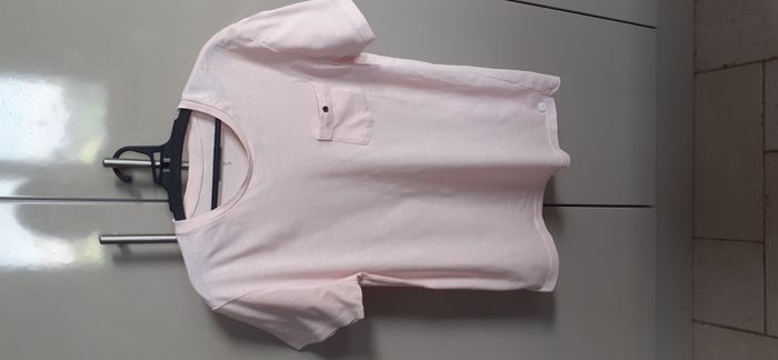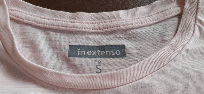 T-shirt femme "In Extenso" 36 (S) Couleur: rose pale Poche poitrine à gauche Col rond Manches courtes Largeur épaules: 40 cm Longueur: 64 cm 100% coton En très bon état.