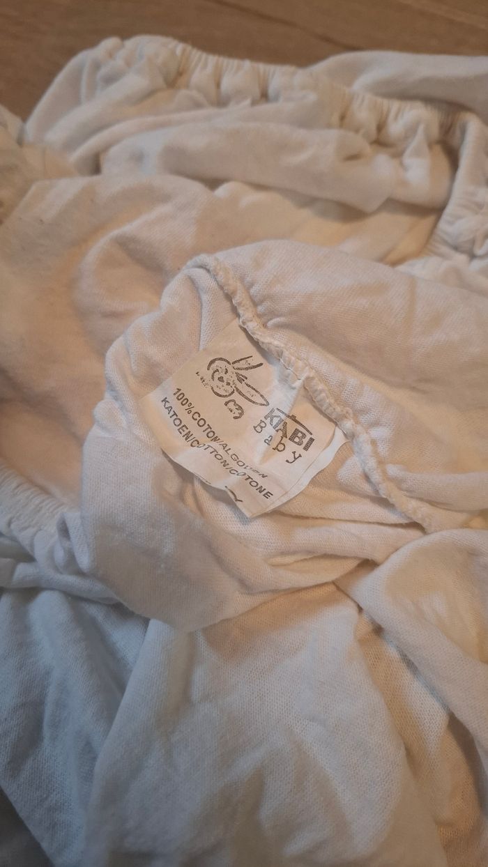 #loluxiapuericulture Drap-housse blanc 60 x 100 cm marque Kiabi Baby. 100% coton Très bon état