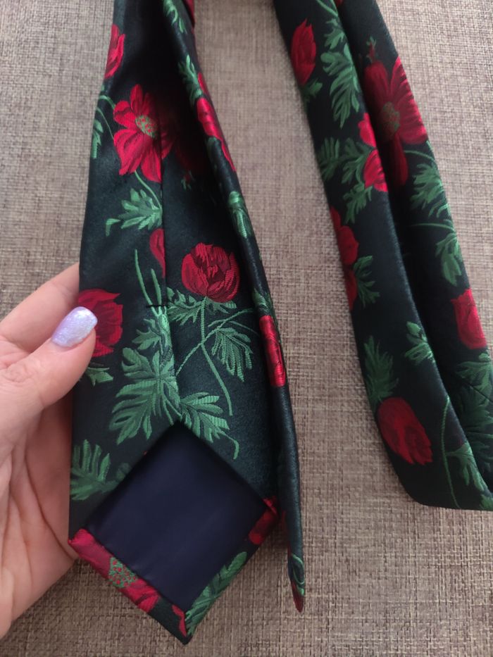 Cravate verte foncée avec fleurs rouges  - photo numéro 4
