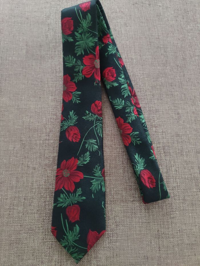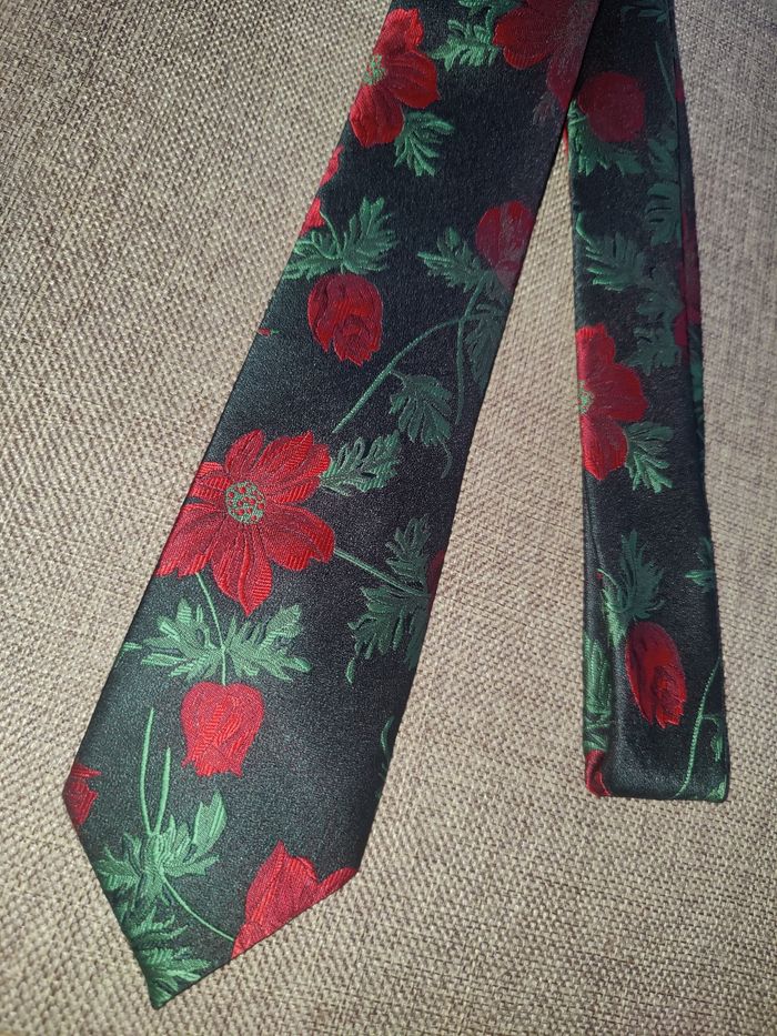 Cravate verte foncée avec fleurs rouges  - photo numéro 1