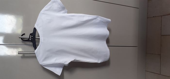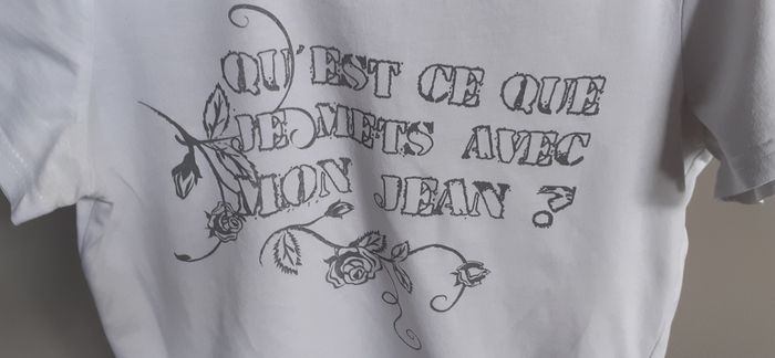 T-shirt femme "Keya Europe" 38/40 (M) T-shirt à col rond Couleur: blanc avec motifs gris 100% coton Marque: Keya Europe Largeur épaules: 36 cm Longueur: 58 cm En très bon état