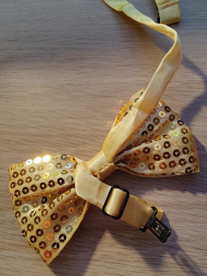 Nœud papillon sequins jaunes dorés  - photo numéro 1