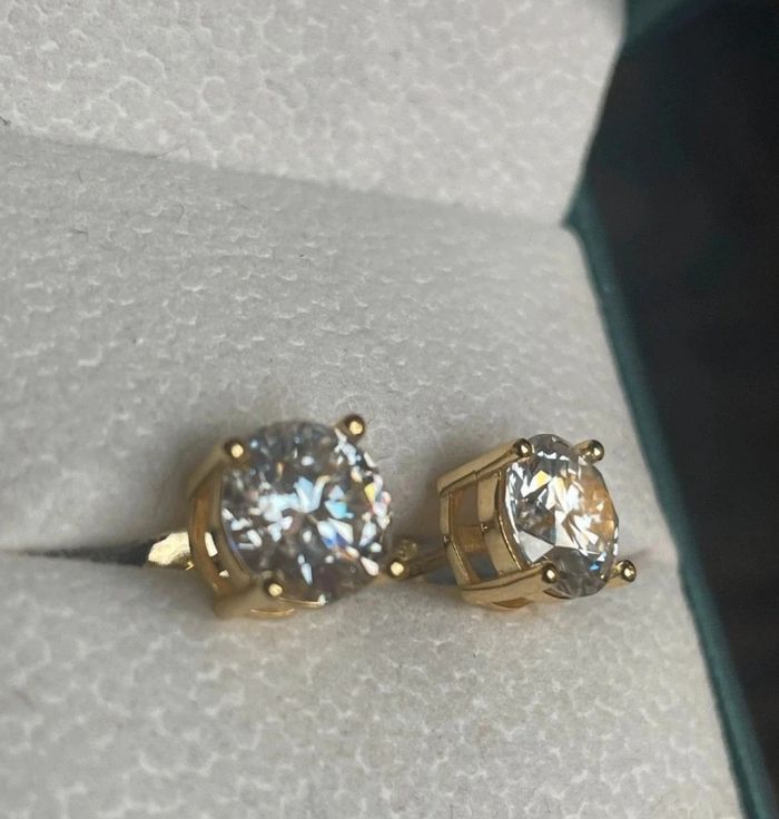 Boucles d'oreilles argent plaqué or jaune diamant moissanite 4cts  - photo numéro 1
