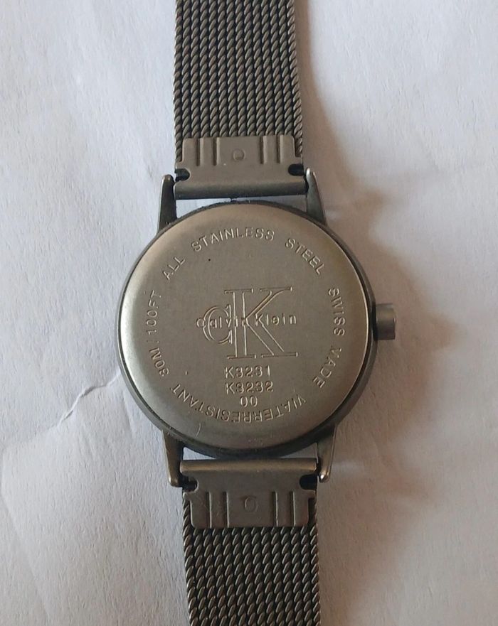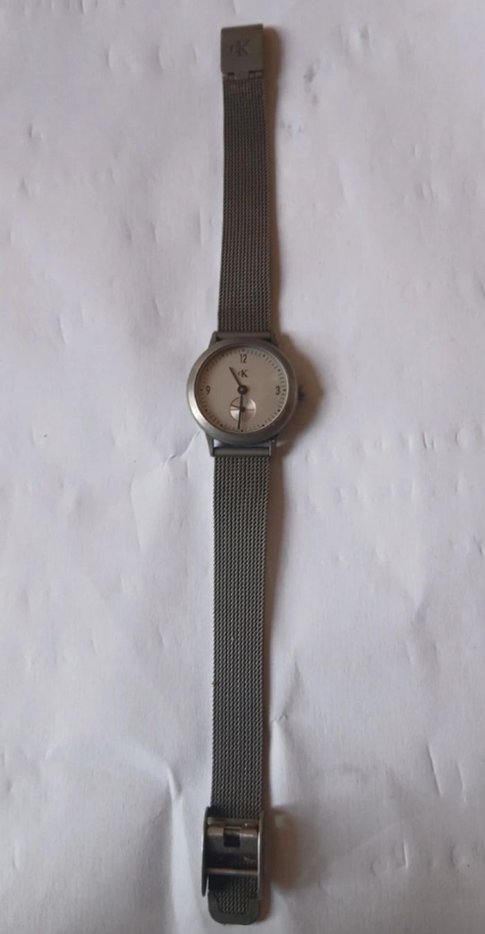 Montre femme acier Calvin Klein Ancienne à quartz Largeur Cadran 22mm Bracelet réglable Pile à changer et peut-être revoir le mécanisme Vendue en l’état