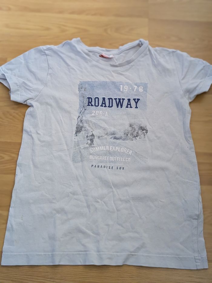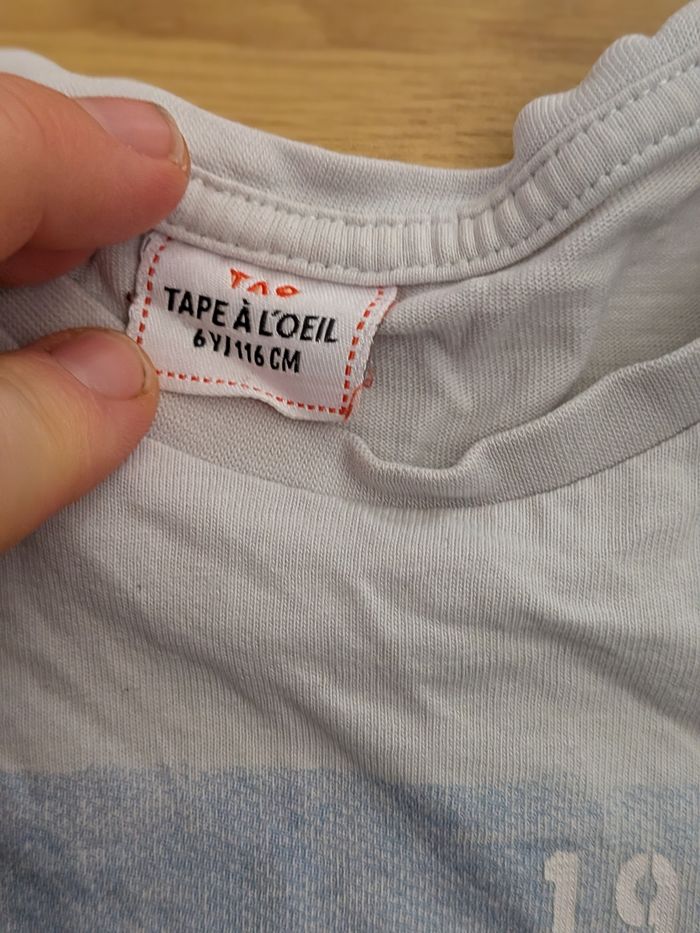 T-shirt manches courtes pour garçon, marque Tape à l’œil, taille 6 ans (116 cm). Couleur blanc cassé avec imprimé style voyage/été “ROADWAY – Summer Explorer”. ✨ Détails : Manches courtes Motif discret bleu/gris sur le devant 100% coton, doux et confortable Facile à porter au quotidien 📌 État : bon état général, légère usure normale due aux lavages. Parfait pour l’été ou les vacances ☀️