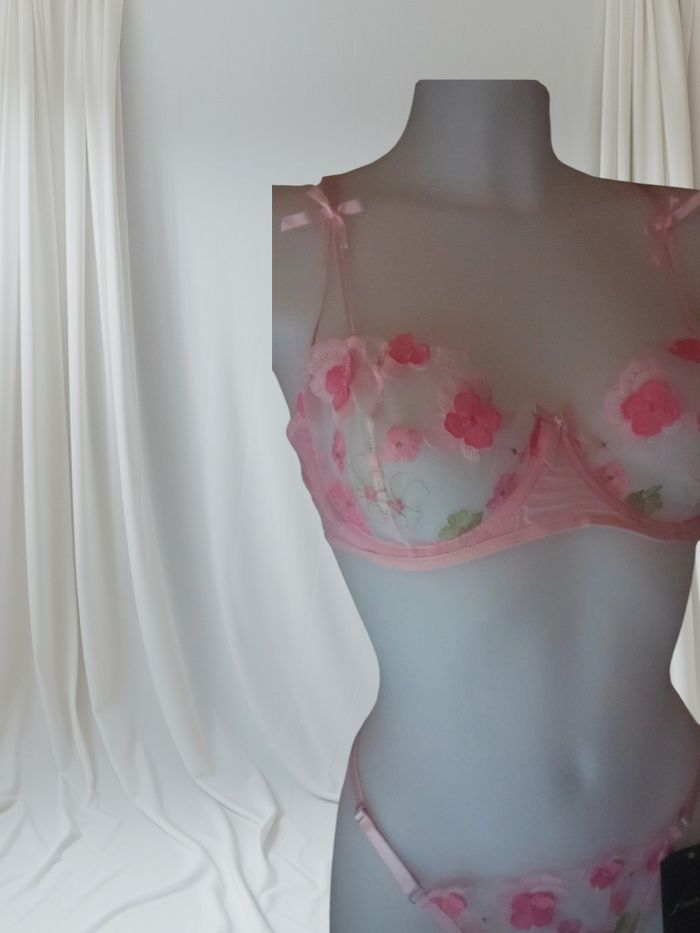Neuf Magnifiques ensemble Taille M ou L Réglable Très beaux détails Soutien gorge tour et bretelles réglables string reglable Paire de jarretières