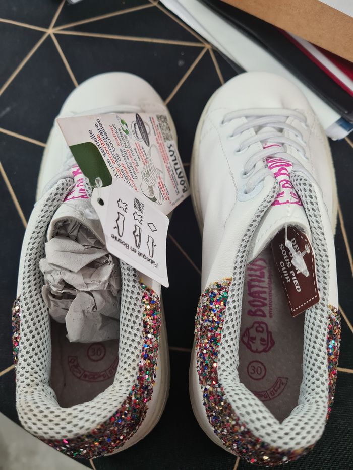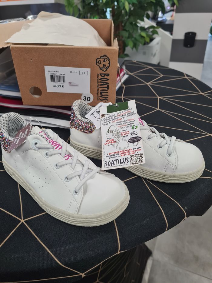 Je vends cette paire de baskets enfant toute neuves avec étiquette. - Type de produit : Baskets - Univers : Enfant - Pointure : 30 - Couleur : Blanc - Matière : Cuir sous pied, textile De.la marque boatilus
