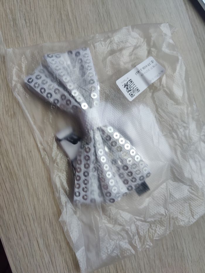 Nœud papillon blanc sequins argentés  - photo numéro 1