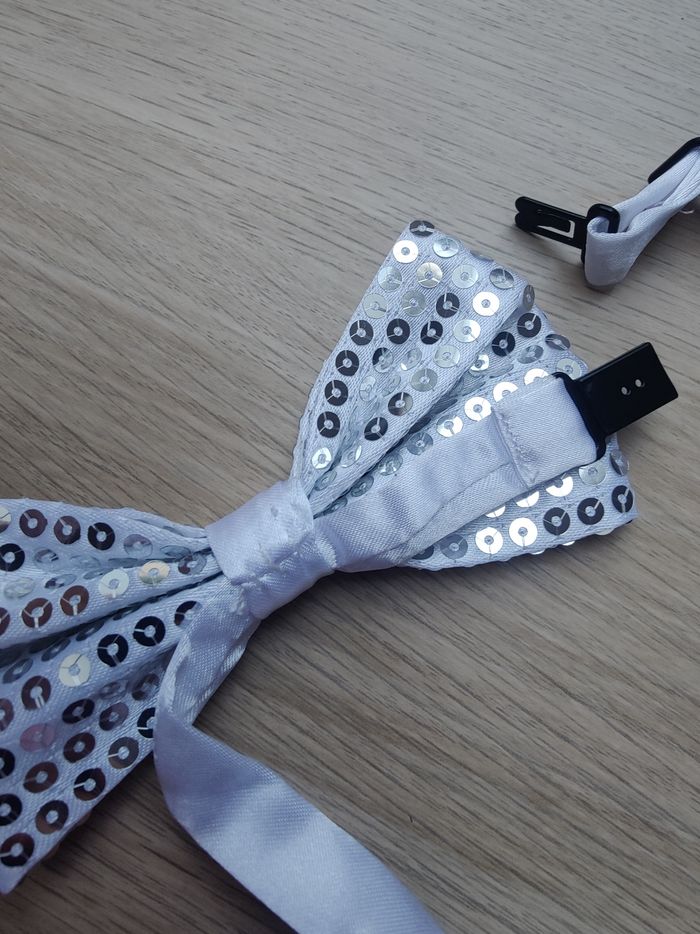 Nœud papillon blanc sequins argentés  - photo numéro 3