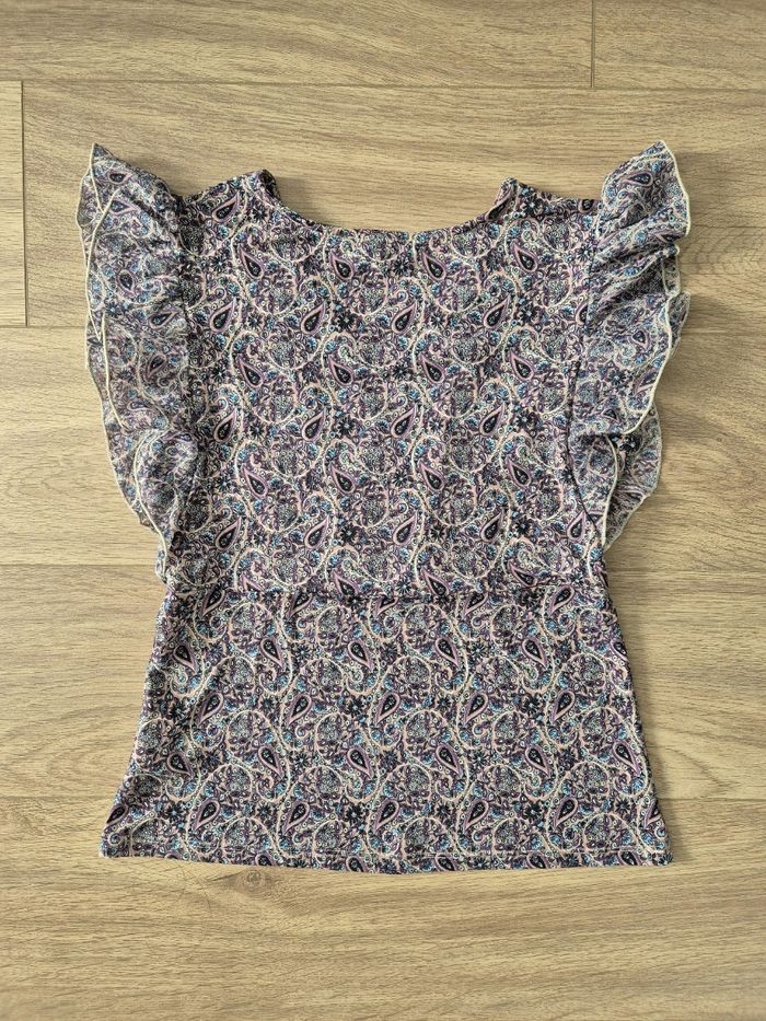 Blouse manches courtes fleurie ,volants sur les manches Comme neuve