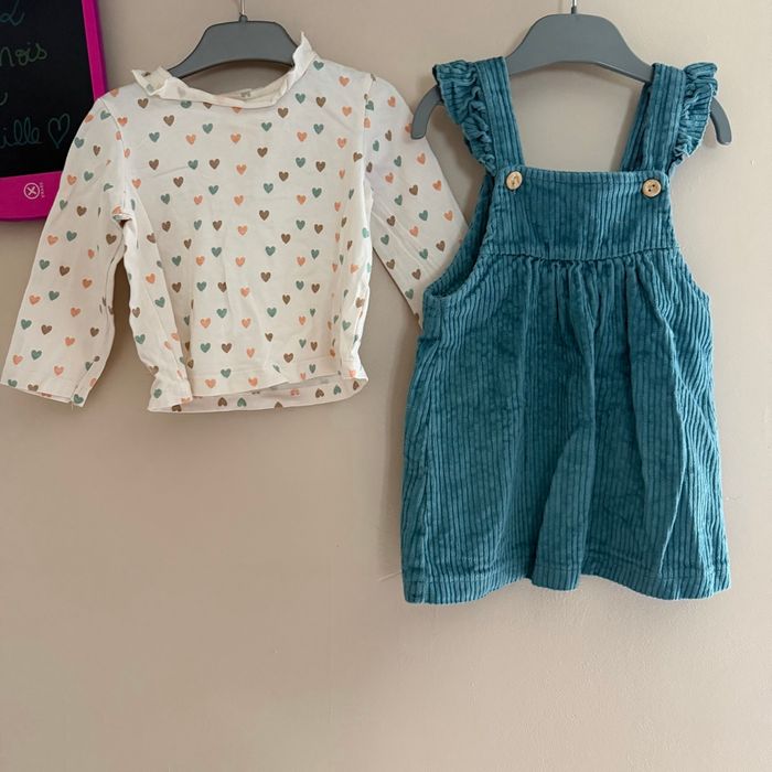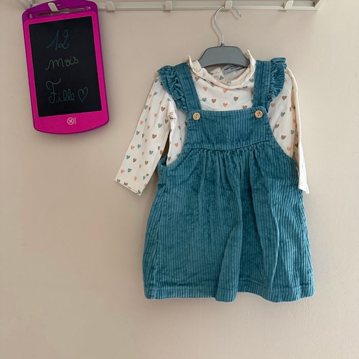 Jolie robe en daim et maillots longues manches à pois Taille 12mois Marque Fashion Private Company #vetements12moisfille #tresbonetat #fashionprivatecompany #robeendaim #maillotlonguesmanches #ensemblebebe