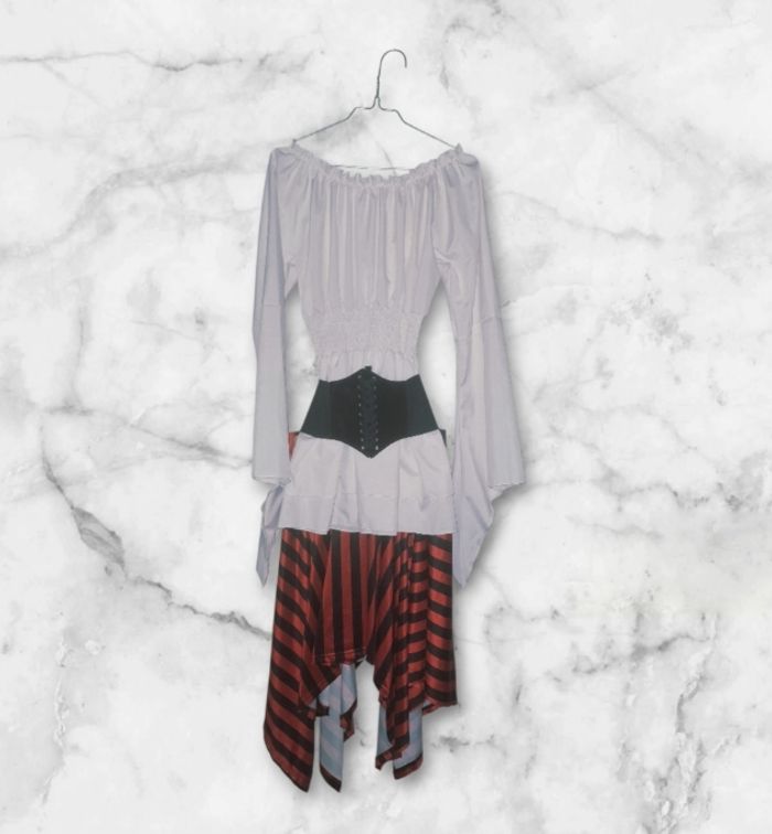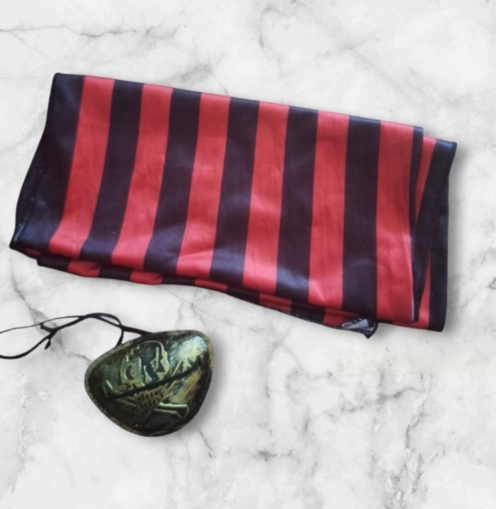 Ensemble pirate taille L comprenant tunique, ceinture, jupe, cache peil et bandeau en tres bon etat comme neuf porté 1 soiree (acheté 37€)