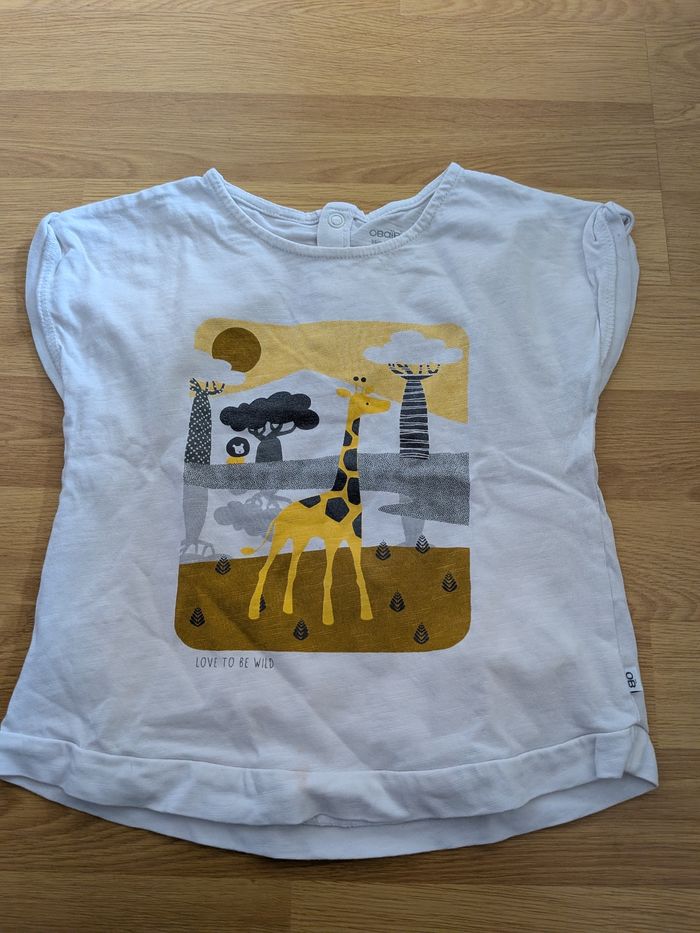 T-shirt pour enfant de la marque Obaïbi, taille 36 mois / 3 ans. Joli imprimé safari avec girafe et message “Love to be wild”. ✔️ Détails : 100% coton doux Bouton pression au dos (facile à enfiler) Manches courtes Parfait pour l’été 📌 État : très bon état