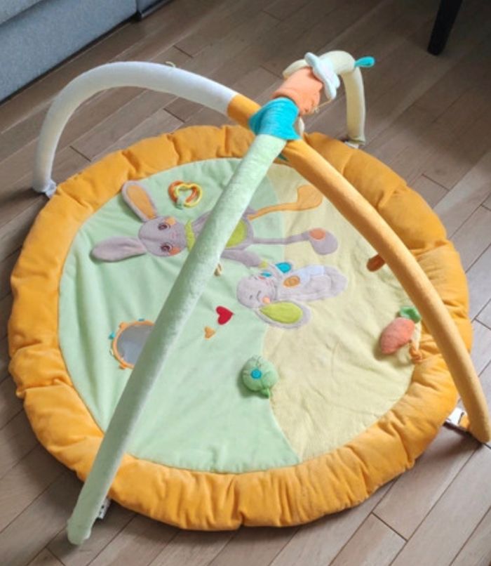 90cm de diamètre, plein de petits jeux sur le tapis, miroir, ...