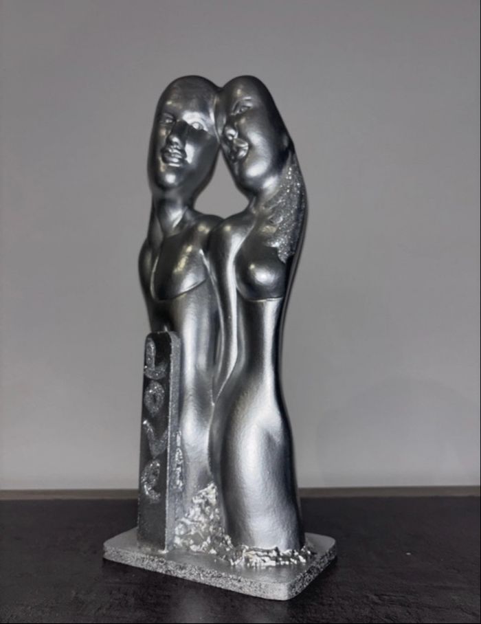 Jolie sculpture neuve argenté homme sage 44 x 18 cm