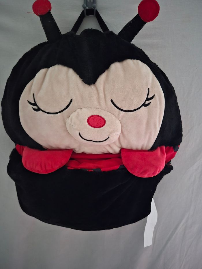 Sac de couchage avec oreillé intégré, modèle coccinelle. Idéal pour enfant entre 3 à 6 ans (mesure 116cm de longueur). Matière douce et fermeture éclair.