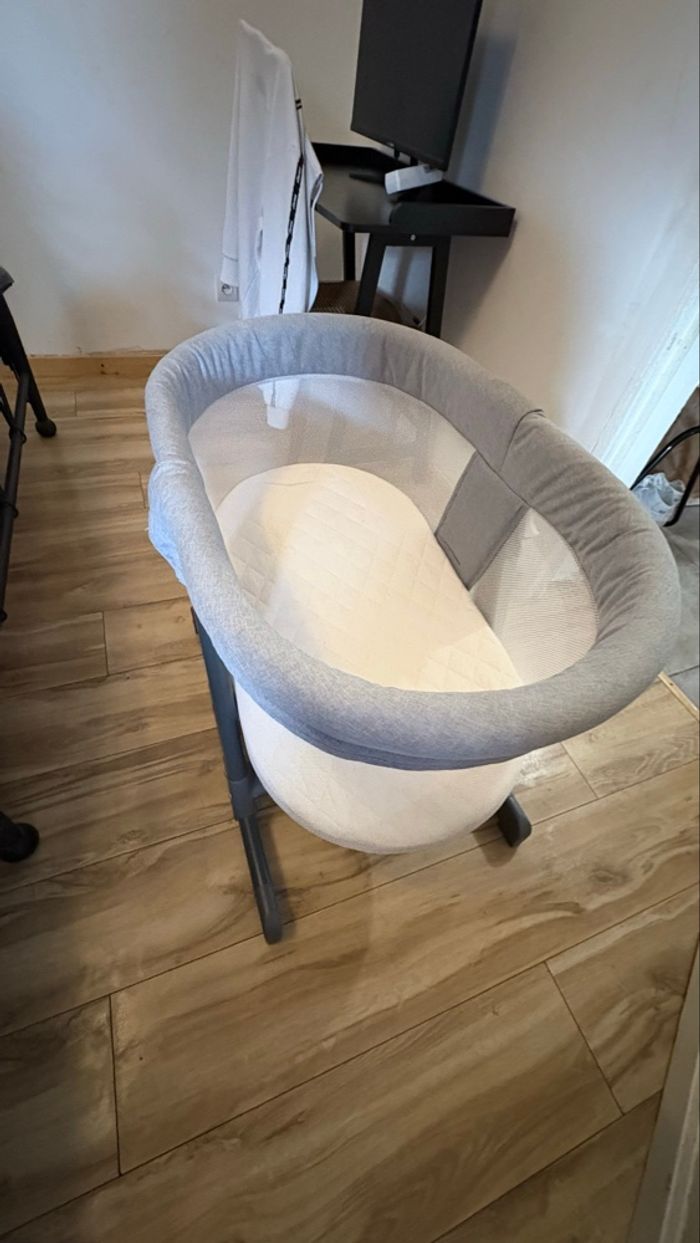 Cododo bébé sécurisé avec matelas – Usage occasionnel Je propose un cododo en très bon état, utilisé uniquement de manière ponctuelle lorsque ma nièce était en visite. Confort & sécurité : • Parois en maille respirante pour une ventilation optimale • Rebords rembourrés sécurisés • Structure stable et robuste • Matelas inclus, propre et peu utilisé Parfait pour les jeunes parents souhaitant garder bébé à proximité la nuit tout en respectant son espace de couchage. Produit stocké dans un environnement sain et non-fumeur.