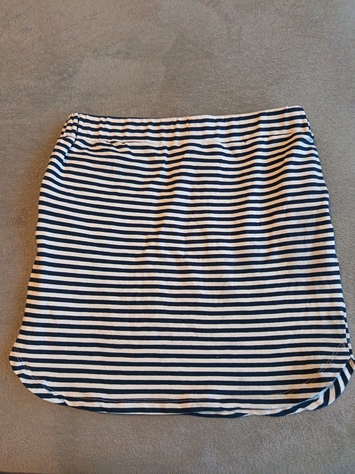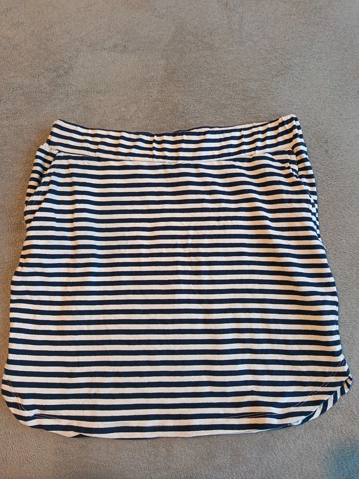 Jupe marine avec poches, élastique à la taille, plus d'étiquette, bon état.