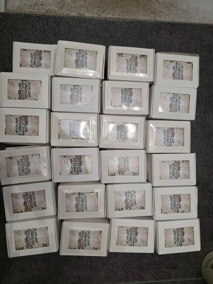 gros lot de 47 collections complètes des 108 cartes marvel leclerc 2024 prix pour le tout idéal revendeur argent reversé à l'association "le combat d'Elyna"