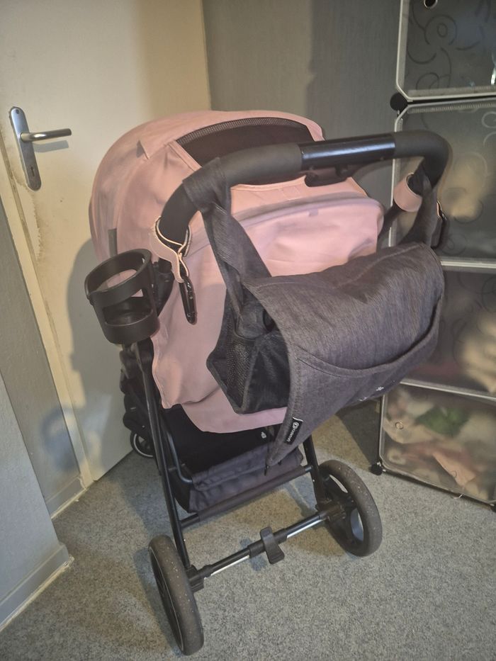 poussette canne kinderkraft trig2 (de la naissance a 24kg) reste en très bonne état (juste des marques d'usures et tâche sur capony qui est d'ailleur xxl il protège bien du soleil ) vendu avec un habillage pluie universel neuf emballée envoie possible,il faut voir ensemble 😀