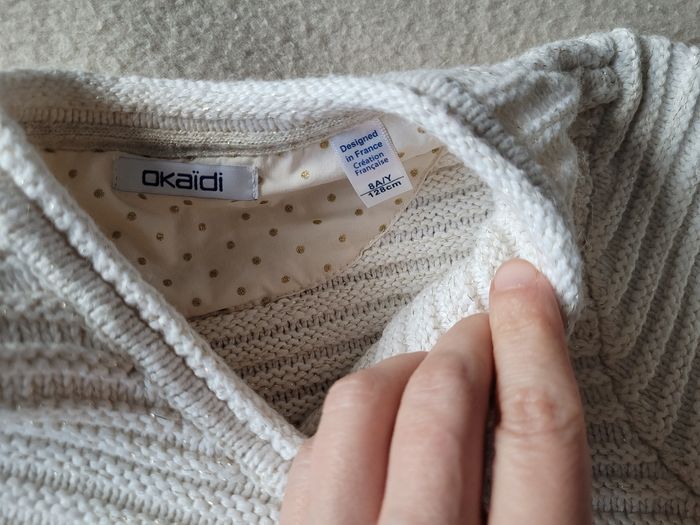 Pull/ gilet okaidi 8 ans En excellent état Couleur crème, dorée