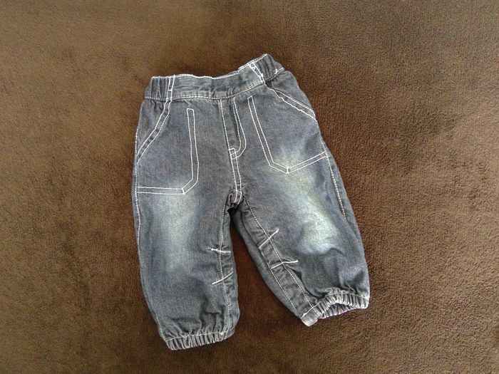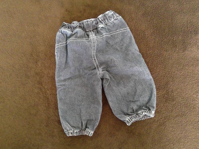 Jean large à enfiler comme un jogging Ouverture par bouton pression au niveau de l'entrejambe Elastique au niveau des chevilles 100% Coton