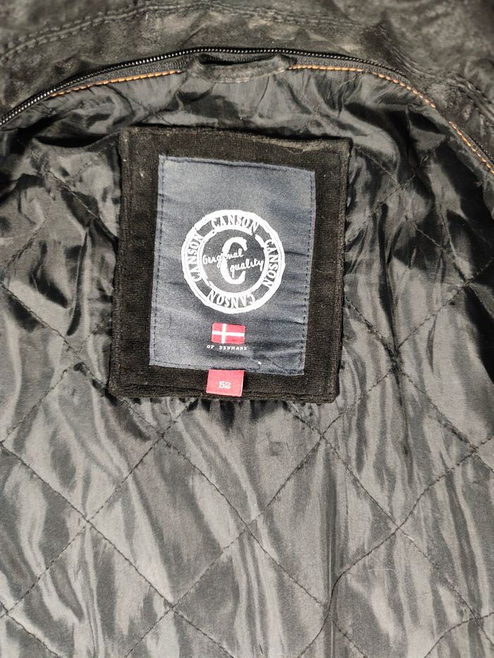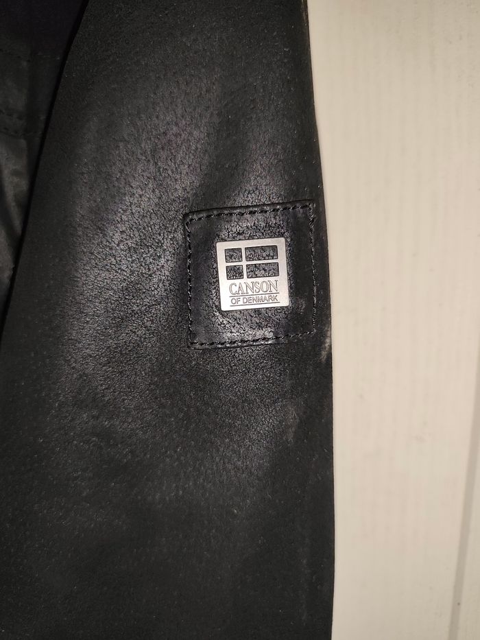 Veste en cuir homme canson of denmark taille 52 /xl Cuir noir type peau de peche. Colle détachable fourni (non présent sur la photo) Très bon état, porté 2 fois.