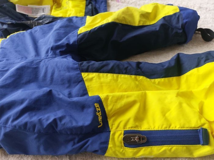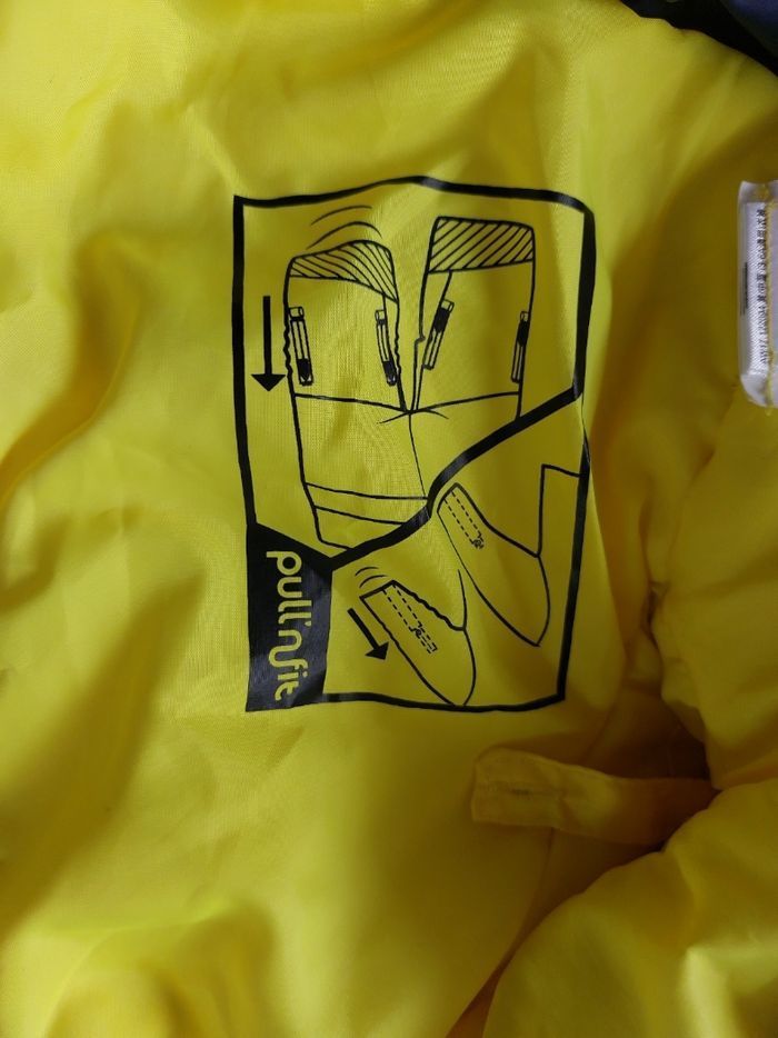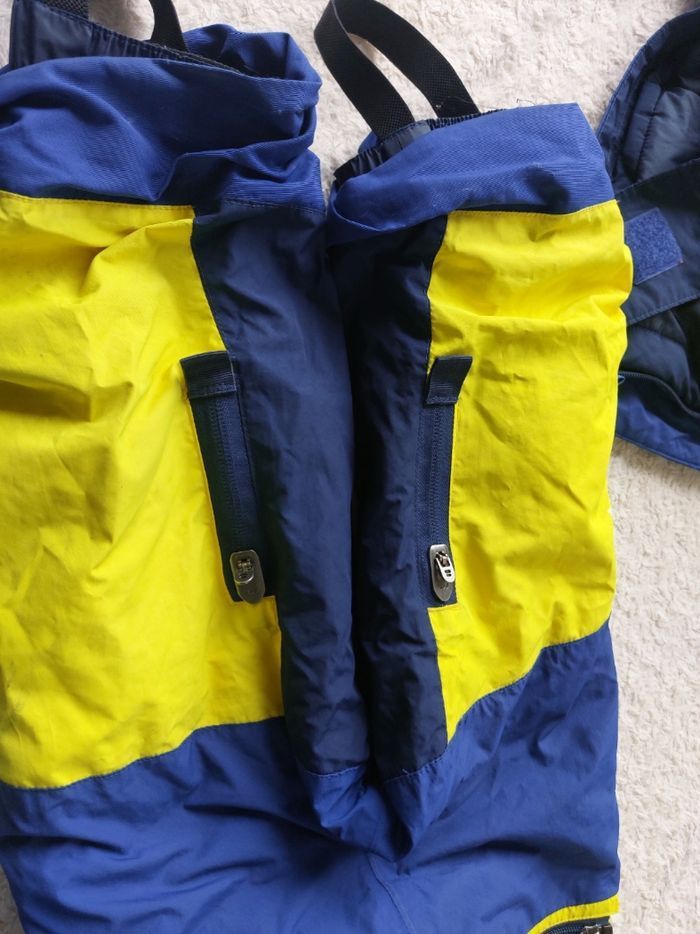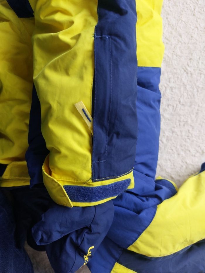 Ensemble de ski complet pour enfant Wedze Combo 500 de chez Decathlon, couleur bleu marine et jaune vif, taille 3-4 ans (91-104 cm). C'est un kit 3-en-1 imperméable et chaud, idéal pour les premières sorties à la neige : Veste avec capuche, zips étanches, poches et isolation thermique. Pantalon salopette ajustable avec bretelles et guêtres anti-neige. Moufles intégrées zippées pour garder les mains au sec. Grâce au système innovant Pull'n Fit, les manches et jambes s'ajustent facilement pour grandir avec l'enfant (jusqu'à 2 ans d'utilisation). Matière résistante, lavable en machine. État : Très bon, utilisé une saison mais bien entretenu. Quelques traces d'usure minimes. Parfait pour le ski, la luge ou les jeux dans la neige. Valeur environ 60 €. Vendu pour cause de croissance de l'enfant.