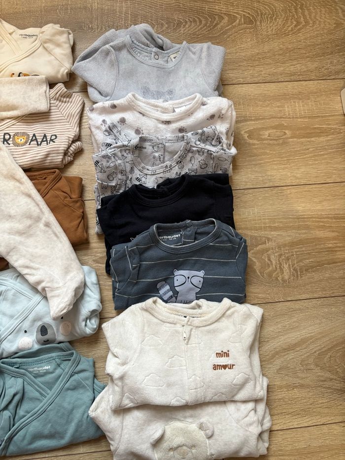 Lot de vêtements 1 mois garçon / verbaudet et tape à l’œil en très bon état - 8 bodies manches longues - 8 pyjamas (5 en velours 3 en coton) Dont 1 seul pyjamas tex - 2 pantalons