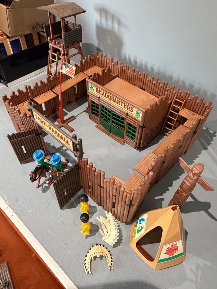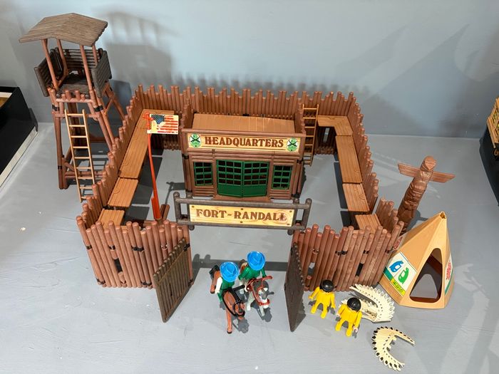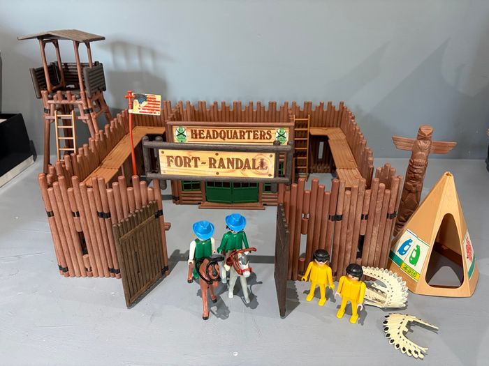 Playmobil Fort Randall Western vintage cowboy Indien Fort avec tour de garde Quartier général Drapeau usagé Totem Tipi Echelles  4 personnages  - photo numéro 1