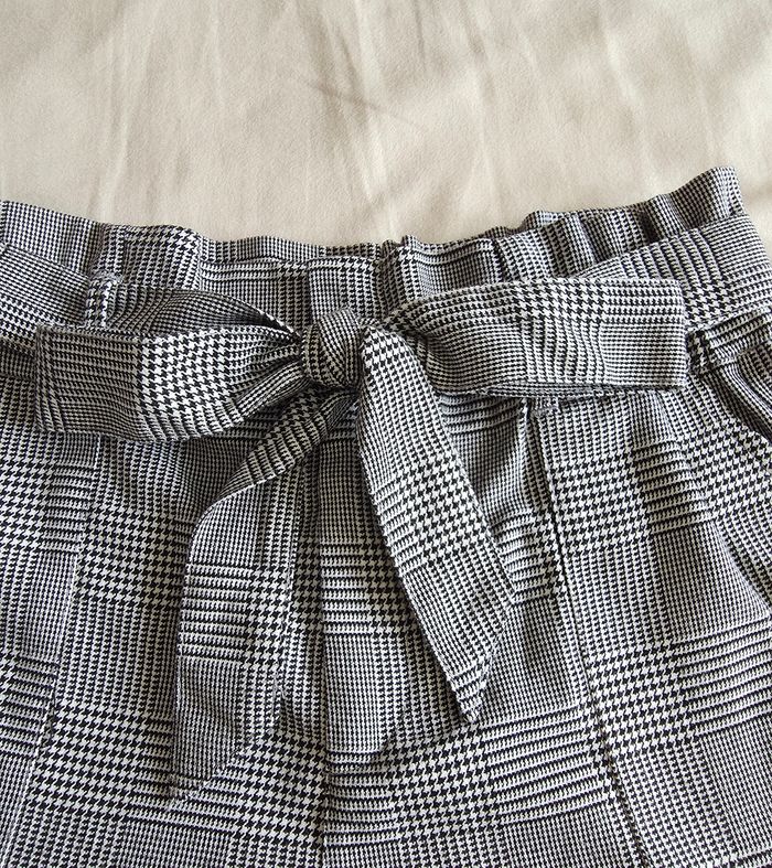​✨ ÉTAT : Très bon état. Le motif à carreaux Prince de Galles est bien net, aucune tache ni accroc à signaler. ​📏 TAILLE & COUPE : Taille S (marqué 26 sur l'étiquette). Coupe fluide avec une taille haute élastiquée et une ceinture amovible à nouer pour ajuster la silhouette. ​🌿 MATIÈRE : 64% Polyester, 34% Viscose, 2% Élasthanne. Tissu souple et légèrement extensible pour un confort optimal. ​📦 LIVRAISON : Envoi via Mondial Relay (lockers), Shop2Shop ou Chronopost (point relais physique). ​🎁 Réductions sur les lots activées ! C'est le moment de compléter votre garde-robe.
