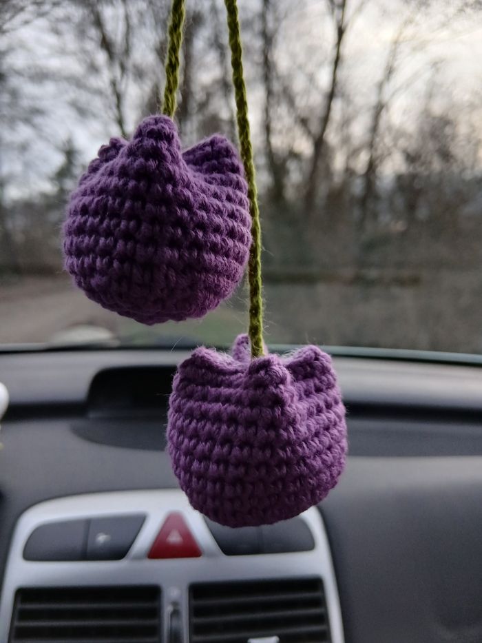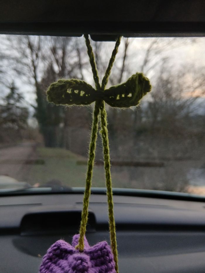 Décoration rétroviseur tulipe violet en 100% coton fait au crochet