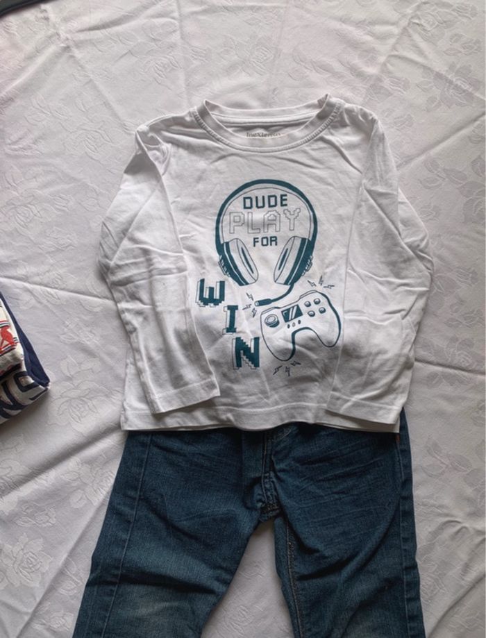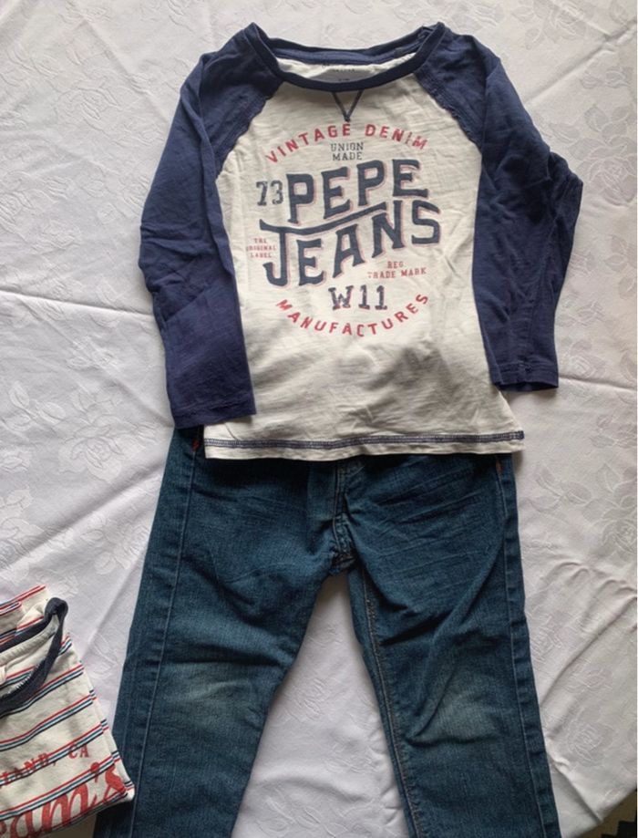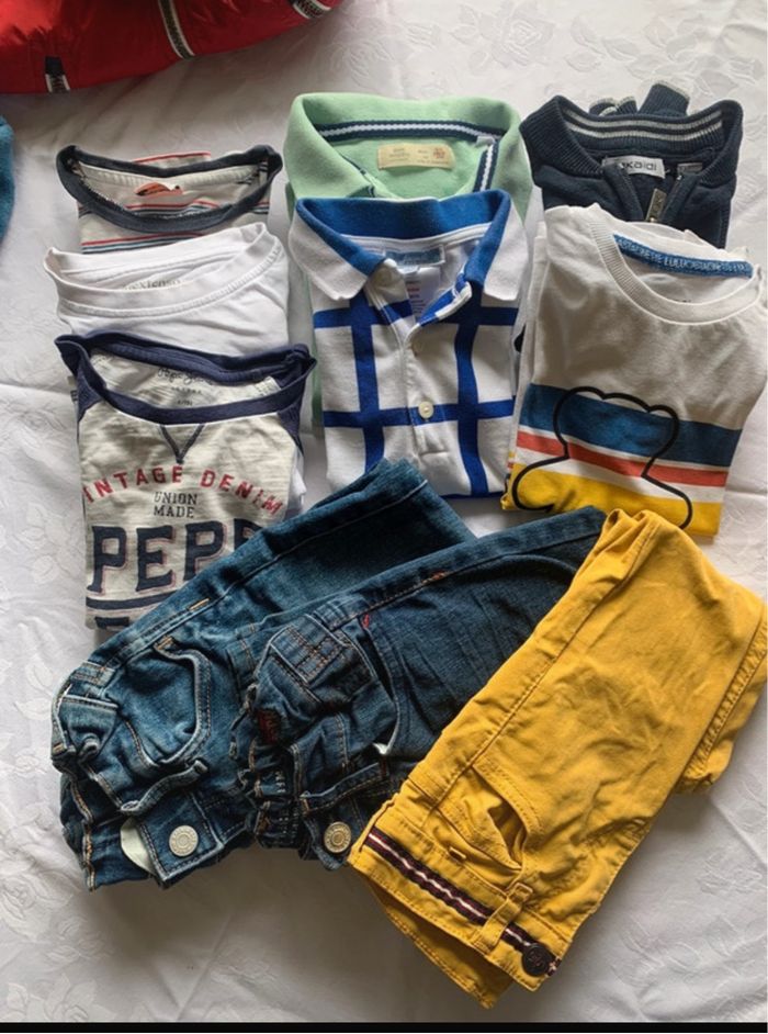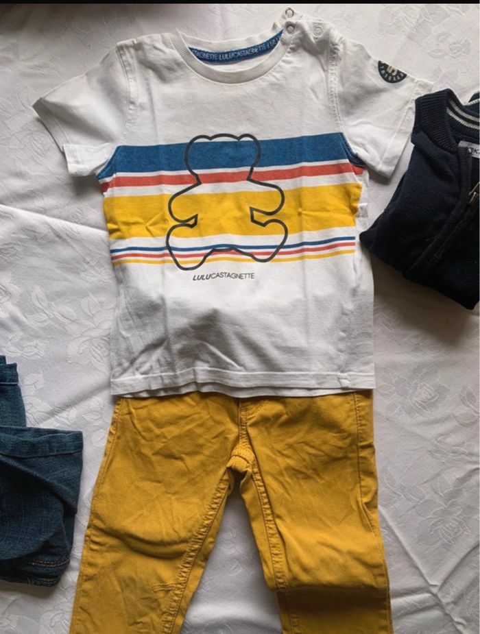 10 pièces , comprend 3 jeans ( complice , sergent major (T2 ans mais très grand ) et H &M , 2 polos ( zara boys et jacadi ) , 3 tee-shirts manches longues ( TAO , pépé jeans et extenso) , 1 tee-shirts( lulu castagnette ) , et 1 gilet obaibi . Le tout est en bon état cf photos