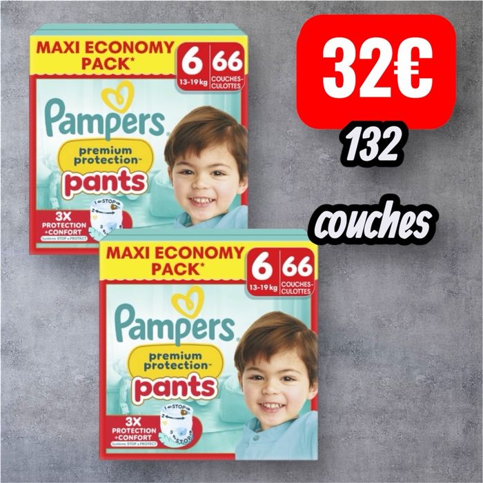 Couches Pampers premium protection pants maxi Economy pack taille 6 66 couches x2 soit 132 couches au total 32€ prix ferme ! Premier arrivé premier servi Envoi rapide et soigné