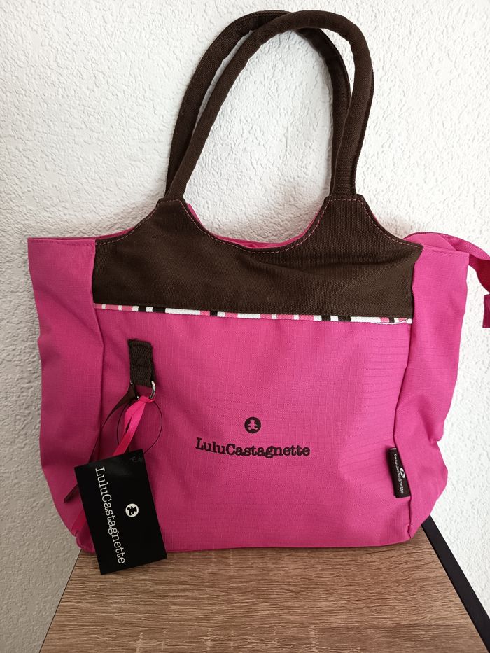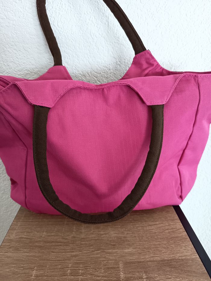 Petit sac femme fuchsia et marron à porter à l épaule. Une poche extérieure et intérieure, petit compartiment. Jamais servi. Très bon état.