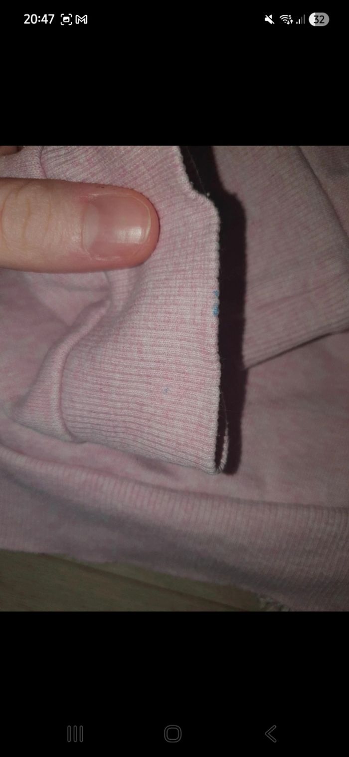 Légère tâche sur la manche voir photo le sweat reste en bon état.