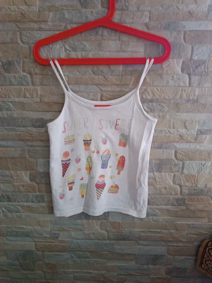 Débardeur blanc Tissaia 5A. Décor "glaces". 100% coton. TBE